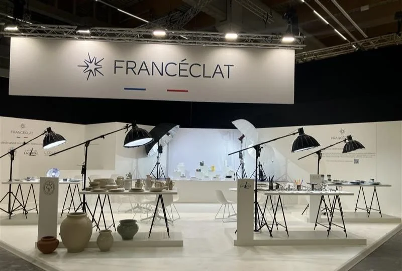 Partout dans le monde, les arts de la table français sont les ambassadeurs d’un art de vivre sans pareil. Francéclat est fier de soutenir les marques françaises tout au long de l'année en les mettant en avant lors d'événements internationaux et en facilitant les rencontres entre acheteurs et journalistes du monde entier. À ce titre, Francéclat participera pour la 3e année consécutive au salon Ambiente en 2026, avec un pavillon regroupant quatre marques de couteliers : Atelier Perceval et Forge de Laguiole, deux marques de renom ainsi que Le Coq français et l'Atelier Rosie, deux jeunes marques qui exposent pour la première fois à Ambiente. Cette année, Francéclat présentera également sur ce pavillon quelques pièces de trois marques françaises émergentes : Atelier Monochrome, Elea Ceramics, deux créatrices de vaisselle, et l’atelier de verre éponyme Lucile Viaud.