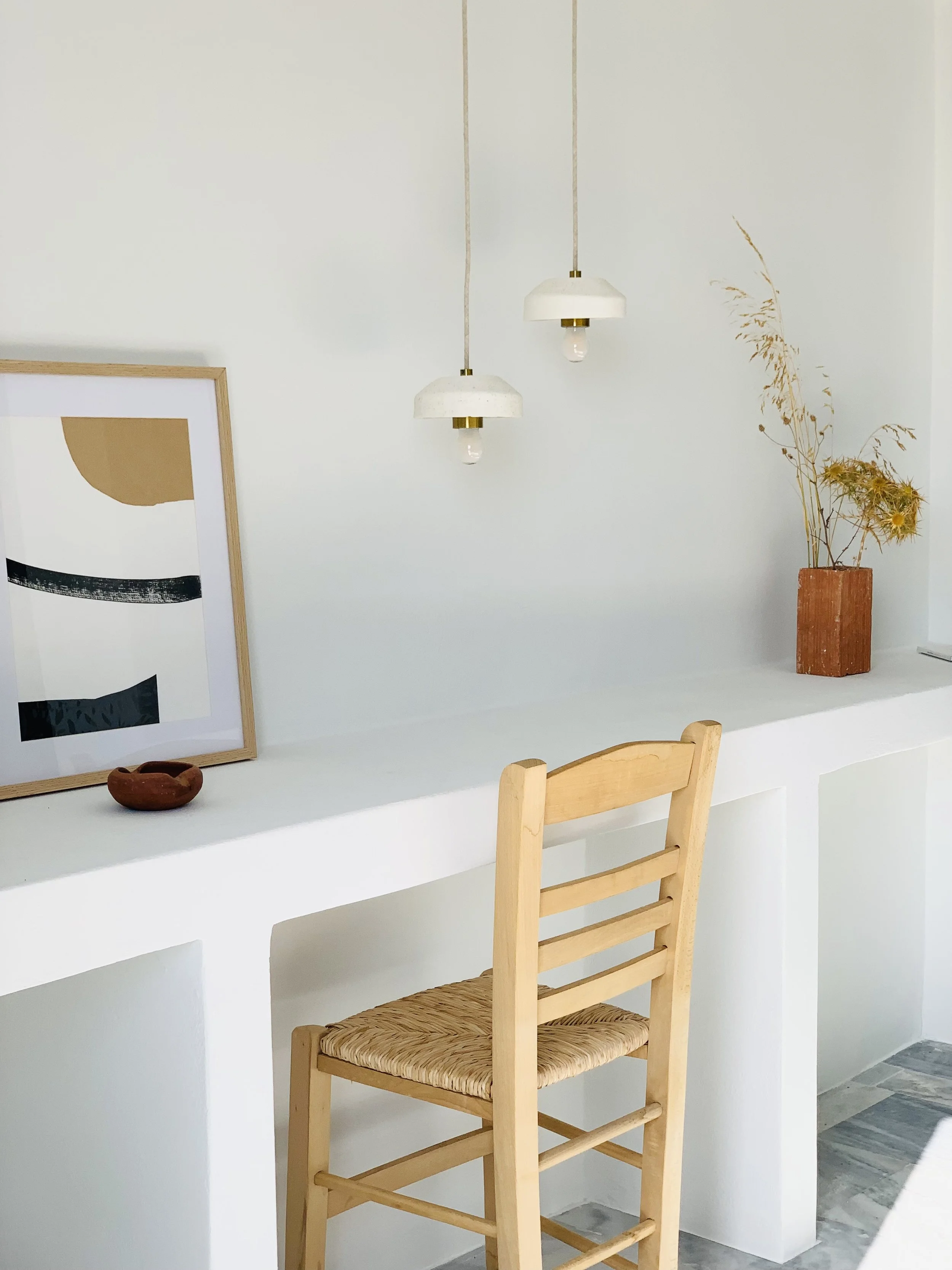 La collection SABLE se décline en plusieurs gammes. Les suspensions ALIKI ont pour point de départ l’envie de travailler sur la matière et la mémoire des lieux.
