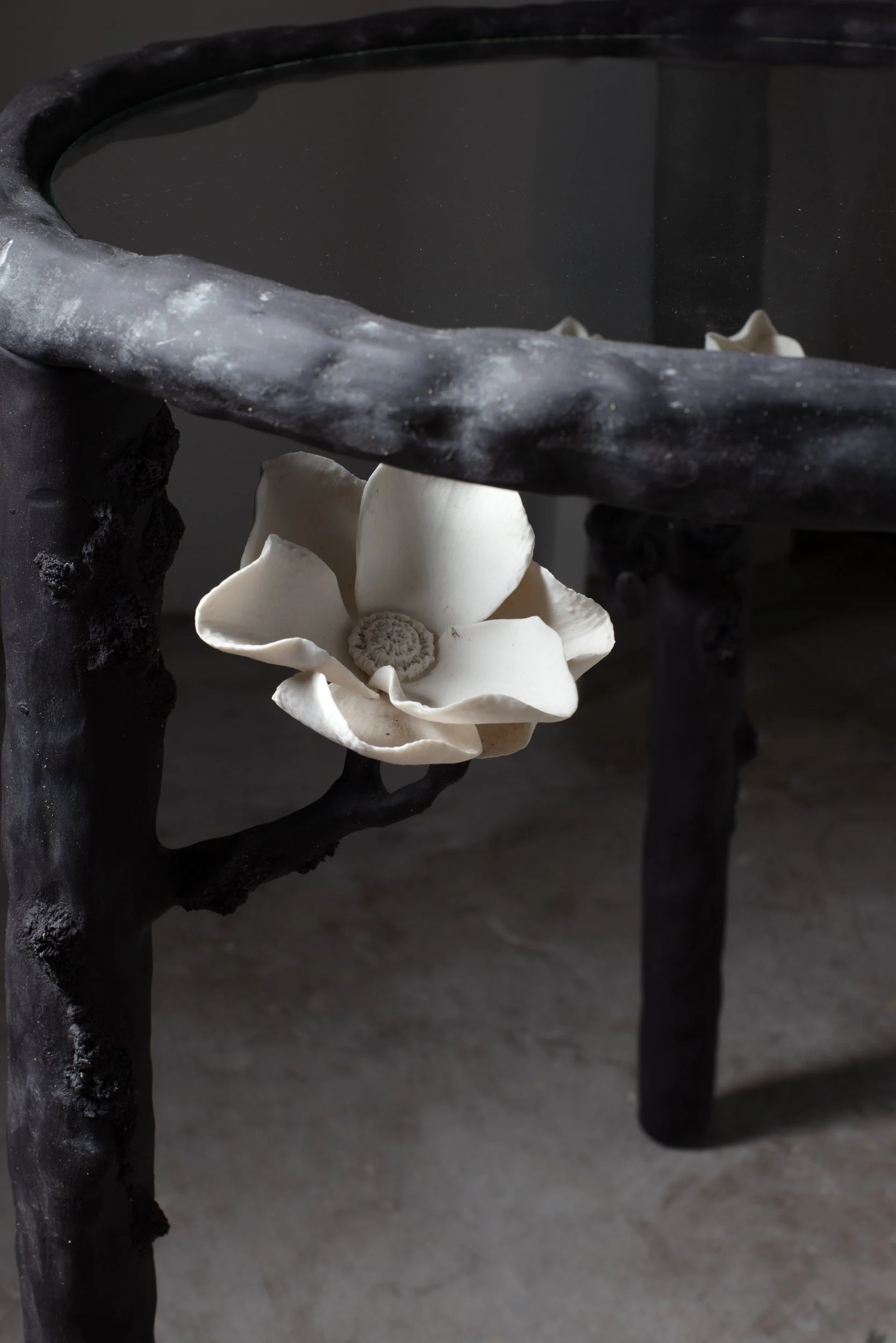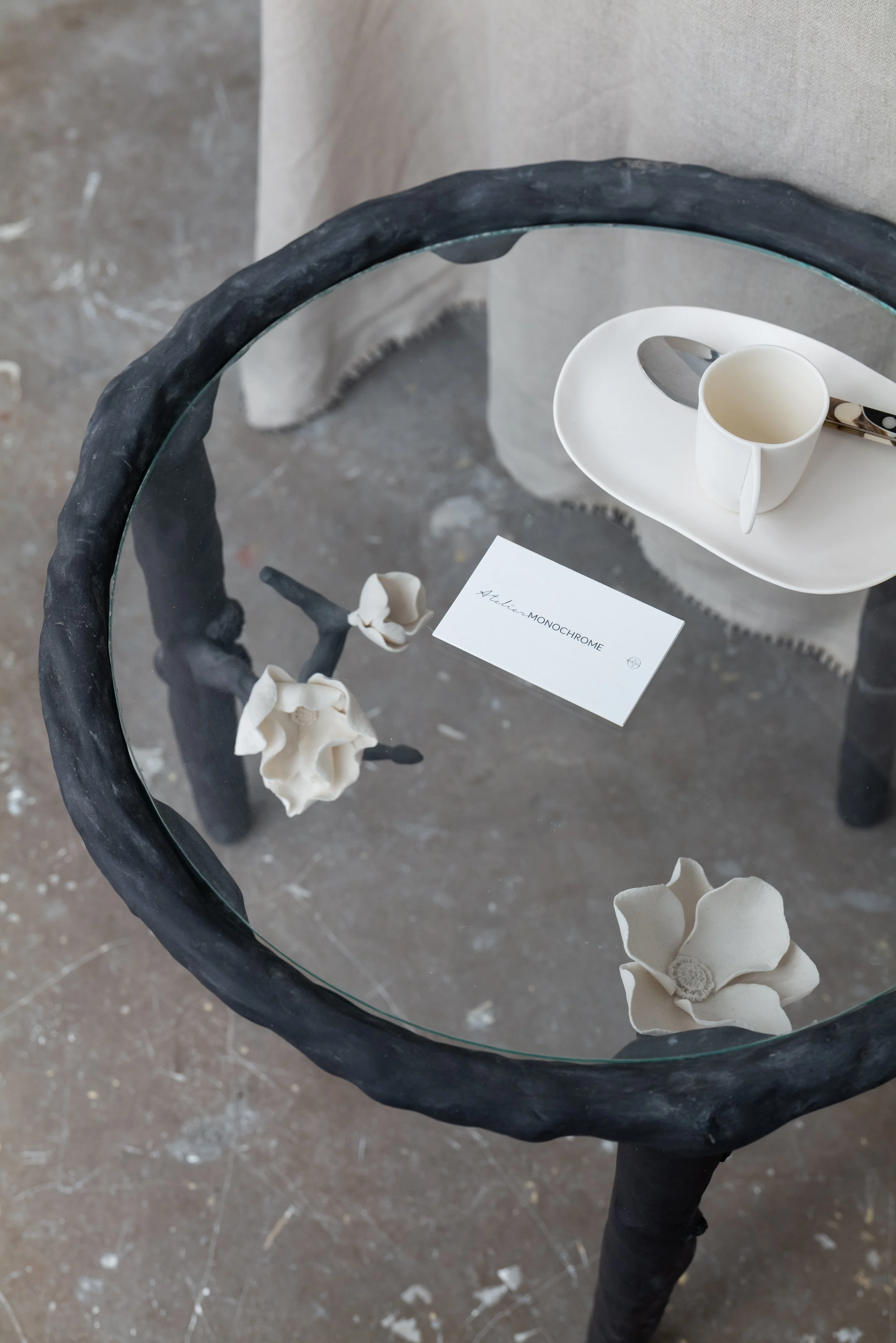 On retrouve dans les réalisations de la collection ABSTRACT WOOD, l’envie de laisser une empreinte, celle du geste de l’artisan par le traité irrégulier et particulier de la porcelaine.