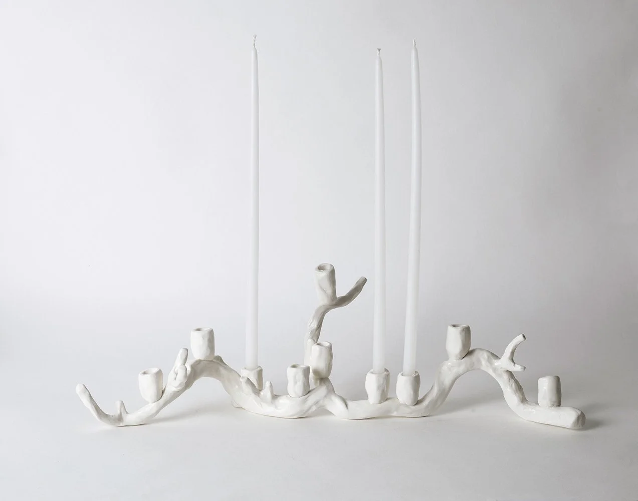 Ces chandeliers sont une interprétation artistique des neufs branches, réalisée en porcelaine ou en grès.